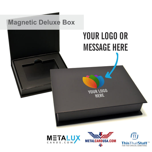 Deluxe Monaco Magnetic Boxes Card Holder – Holds our high end Metal Cards, can also hold any Credit Card or Gift Card size – Custom Printed Box