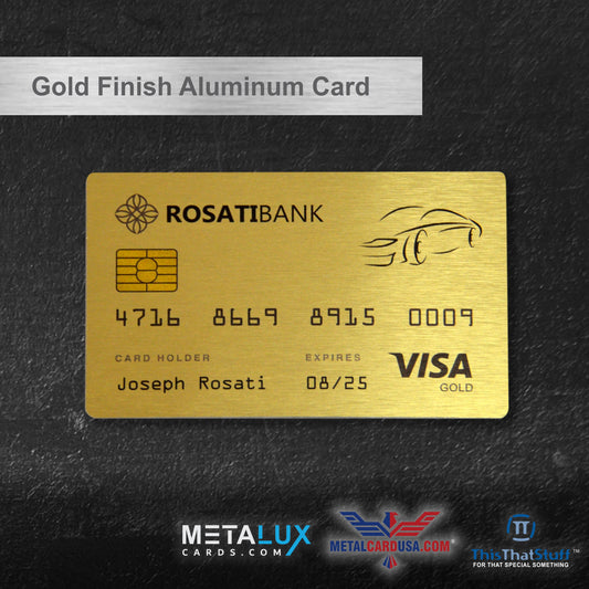 Custom Printed Gold Finish AluSwiss Metal Cards | Credit Card Sized | Aluminum for Membership Cards, Business Cards and Invitations